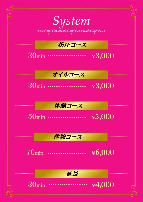 心を込めたマッサージで日々の疲れを癒しませんか?気持ちが満足すると体も軽くなります.当店独自の手技でお客様を癒しの世界に導きます。美人セラピストが醸し出す雰囲気をご堪能下さい。